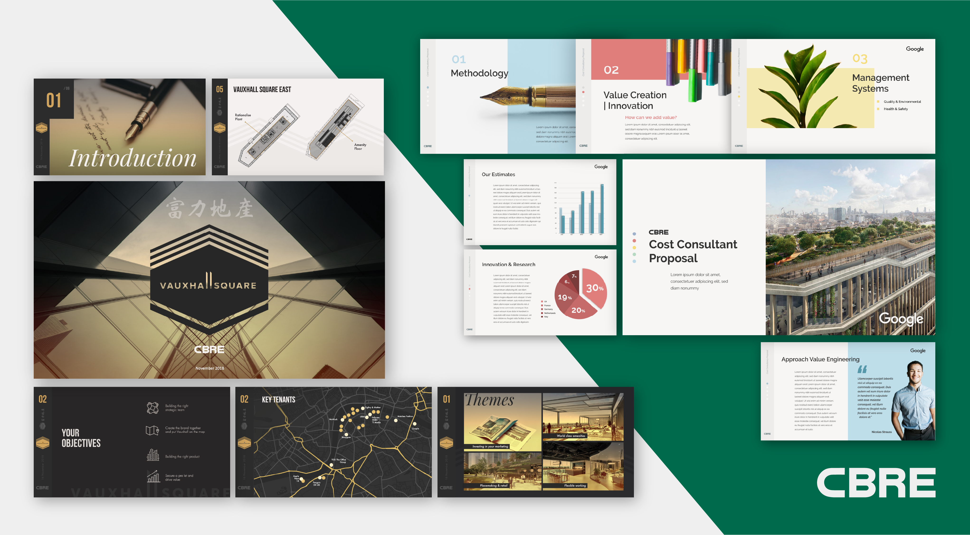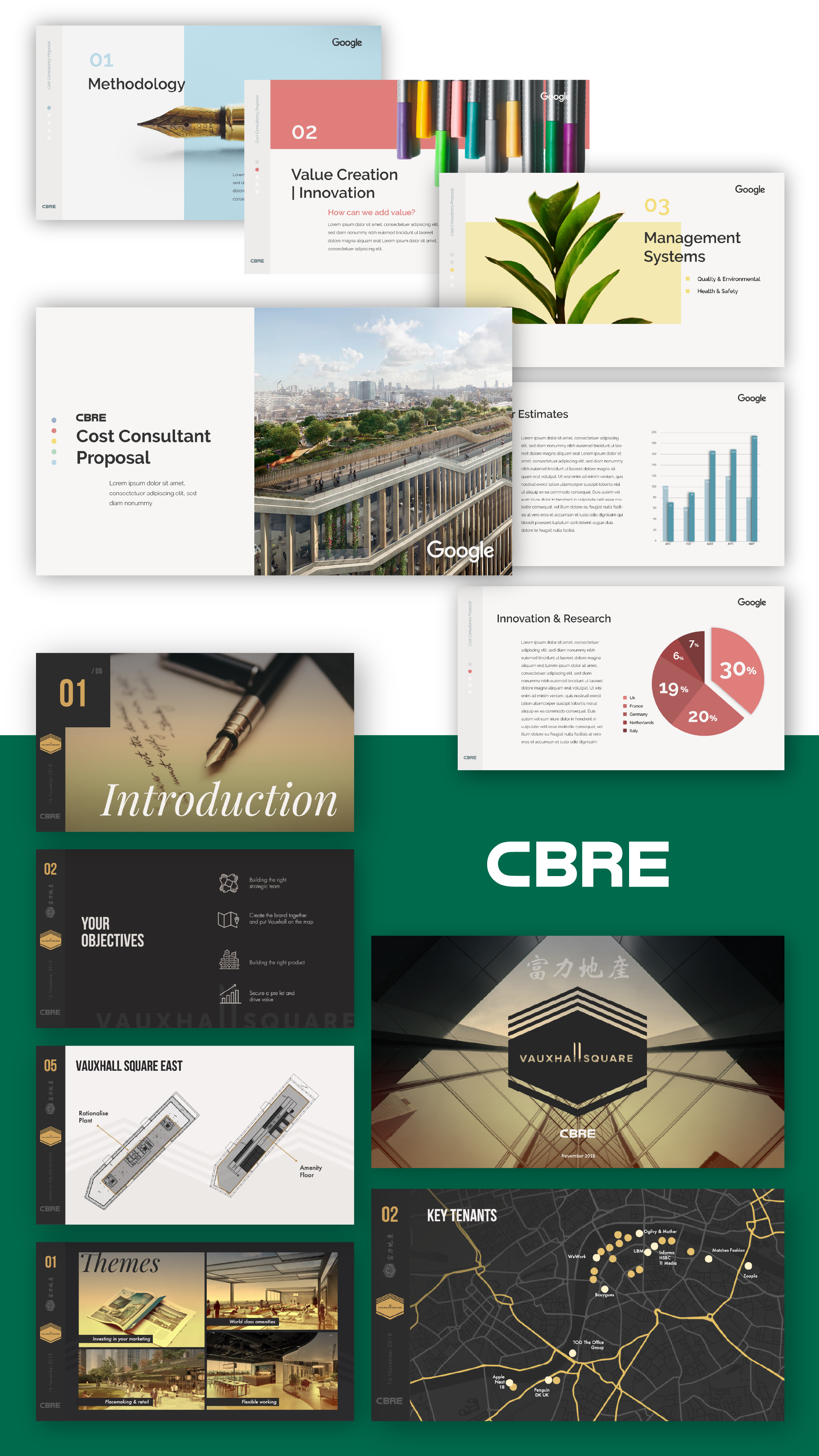 Below are a few examples of our print work. Some magazine editions created with love for Queen’s College, London, a creative leave-behind crafted for Smart brevity presentations to be used as a clever toolkit, and a magazine layout developed as part of CBRE’s distinctive pitch materials.