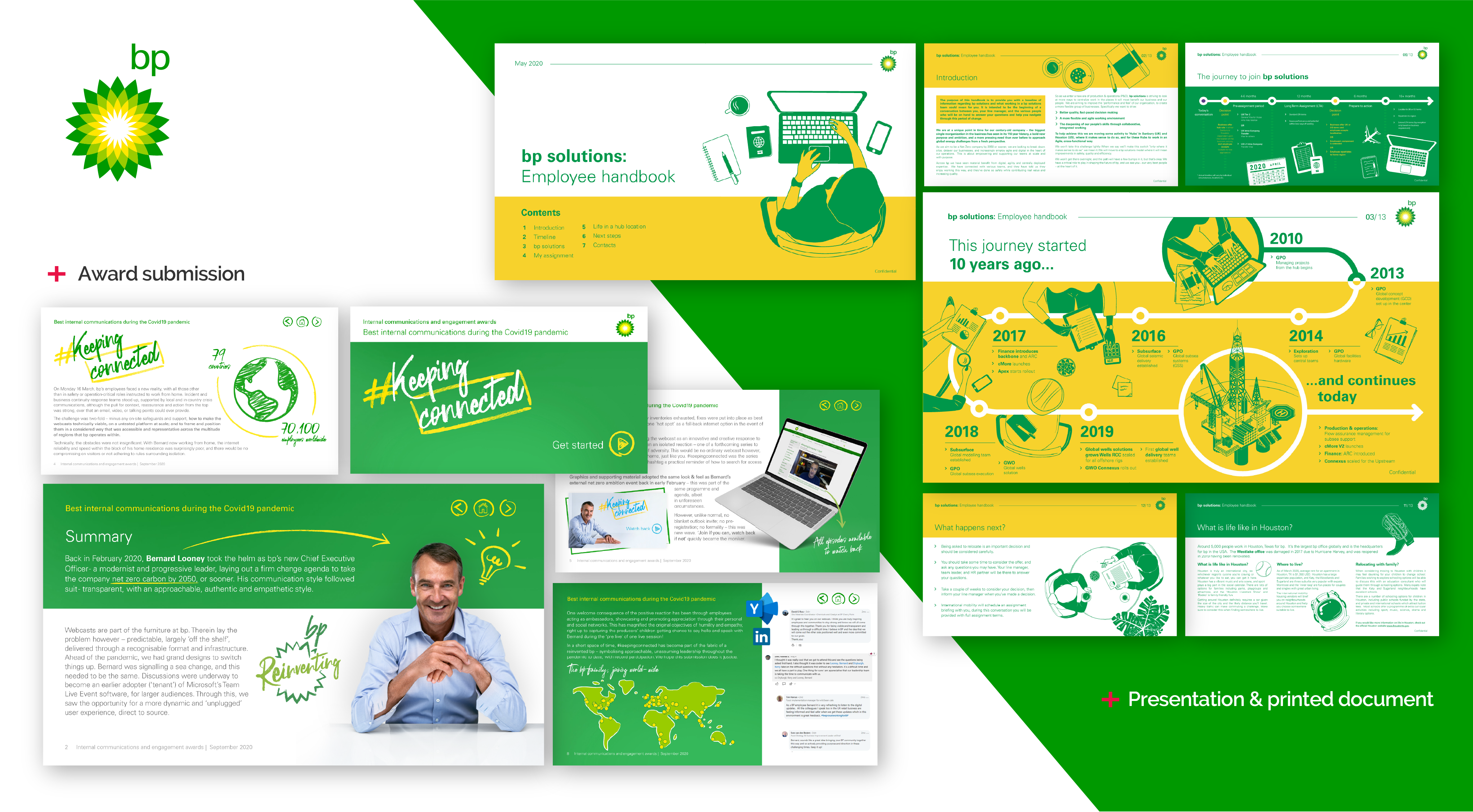 In corporate work, the more familiar we are with a brand, the faster we can deliver — and the better the materials we create. Long-term partnerships mean quicker turnarounds and more impactful results. Take bp, for example: our long-term collaboration showcases the wide range of work we can produce together.