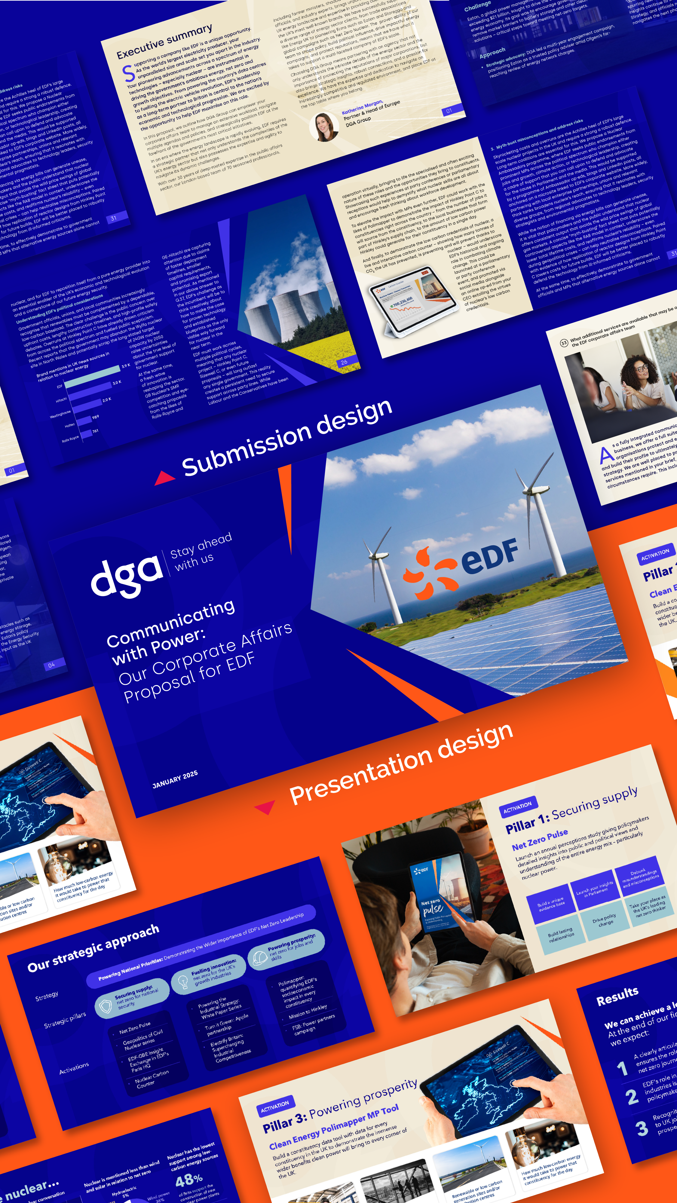 Ohhh PowerPoints, the bread and butter of graphic design in the corporate comms world. Some designers see it as a bit of a nuisance, but we at Morango have learnt to genuinely enjoy it. We have our fun — whisking slides away to Illustrator, adding animations, crafting eye-catching graphics — before bringing it all back into PPT. The end result is polished, standout materials that feel fresh, purposeful, and always on-brand. Pitch support is one of the most frequent requests we receive for presentation design. The creative challenge lies in striking the perfect balance between the branding of the company presenting and the company being pitched to.
